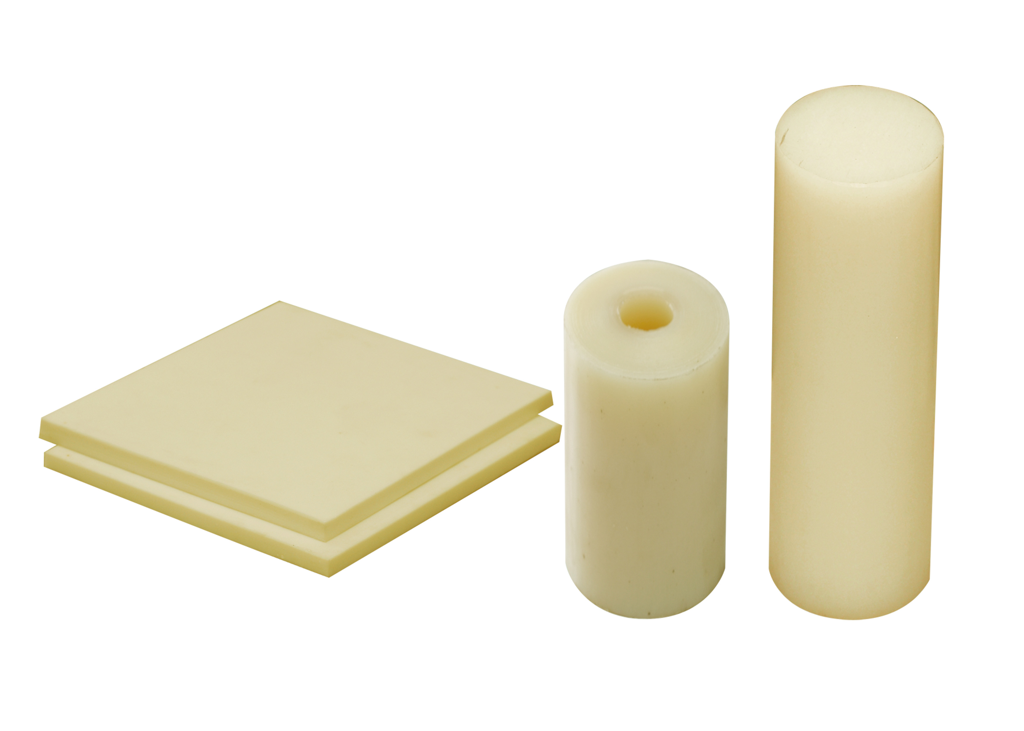 澆注型尼龍是一種將低分子化合物在澆注過(guò)程中聚合反應(yīng)的尼龍材料,因聚合反應(yīng)是與成型同步進(jìn)行的,可將其聚合時(shí)間充分延長(zhǎng),使其分子量足夠的大,且加入油劑,除保留尼龍(一般成型方式用的尼龍材料分子量一般較低,分子量過(guò)大會(huì)帶來(lái)流動(dòng)性差,成型困難)的重量輕、易切割、高強(qiáng)度、耐磨損等特點(diǎn)外,還具有較好的耐磨性、自潤(rùn)滑、高抗沖及抗擠壓等特點(diǎn),可應(yīng)用于機(jī)械制造行業(yè),適用于制造各種齒輪、軸承座、軸瓦、軸套、滑板、導(dǎo)桿、磨擦板等。