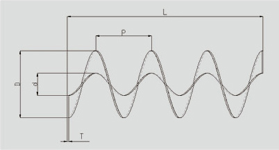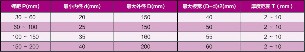 2、 連續(xù)等厚技術(shù)生產(chǎn)的螺旋葉片與連軋技術(shù)生產(chǎn)的螺旋葉片一樣為多螺距的連續(xù)形態(tài),其特點是成型精度高,外沿厚度與內(nèi)孔厚度一致。