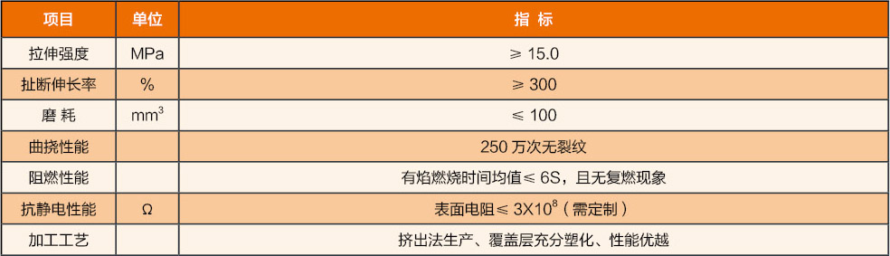2、固有的抗油、耐水及耐腐蝕性能,且具有良好的阻燃及耐磨性能
